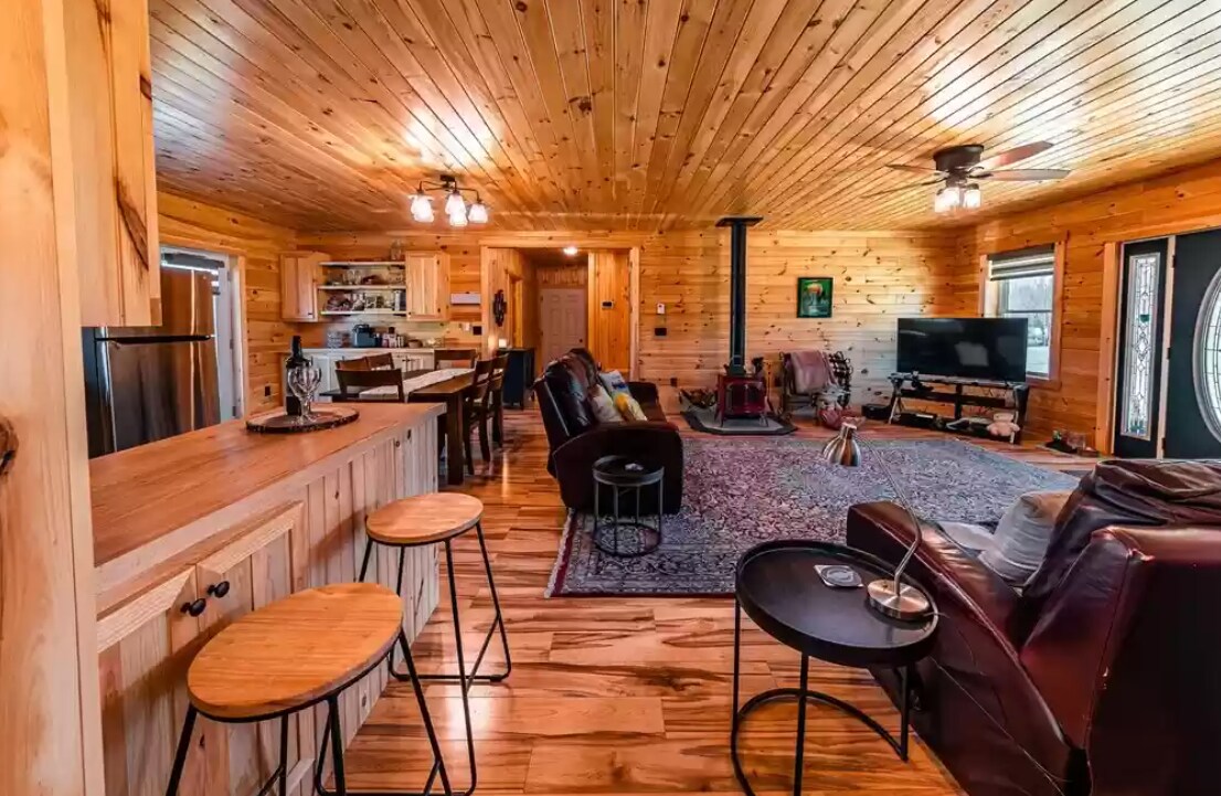 Uživajte v naših 160 hektarjih v zasebnem naravnem okolju. Sove, postrv, čaplja, osprey, združilci in občasna loona bodo prispevali k vašemu bivanju. Obstaja več kot 4 milje zasebnih poti za pohodništvo ob reki in v gozdu. Na voljo so kajaki in palice za ribolov. Uživajte v romantični ognjišču ob reki, profesionalni masažni mizi in novi finski savni iz lesa. Vse razkužujemo 110% pred vašim prihodom in ponujamo samostojni vstop. Praznujemo raznolikost in sprejemamo ljudi iz vseh skupnosti.