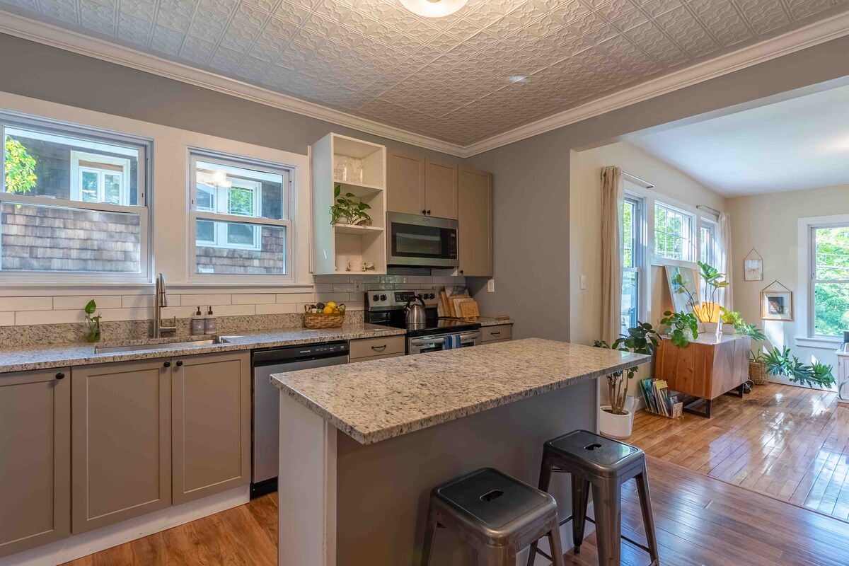 A classic 1920s Maine bungalow lovingly renovated. Our pet-friendly plant-filled home is an Auburn favorite. Unwind in our sunlit yoga studio - ideal for meditation, painting, or movement. Whisper-quiet heat-pump HVAC plus a hybrid water heater for eco-friendly comfort. Enjoy the rewilded pollinator garden of native Maine blooms. 5 min to Bates & St. Mary’s, 40 min to Portland, Brunswick, Bath, and Freeport. Stays of 14+ nights include complimentary weekly cleaning.