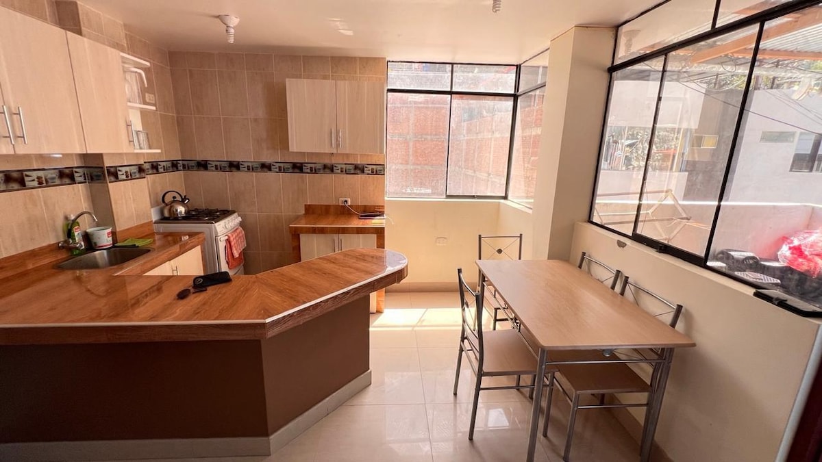 Lindo mini departamento amoblado ubicado en el centro de Churín, cerca a restaurantes, tiendas y atractivos turísticos como los Baños Termales del Complejo Ecológico Mamahuarmi, Baños Termales de la Juventud y Baños de Fierro. El departamento cuenta con agua caliente, tv y cocina equipada, así como con dos cómodas camas de 2 plz. y un sofá cama. Nuestro espacio ha sido diseñado para brindar a nuestros huéspedes una estadía cómoda, acogedora y con una excelente ubicación.