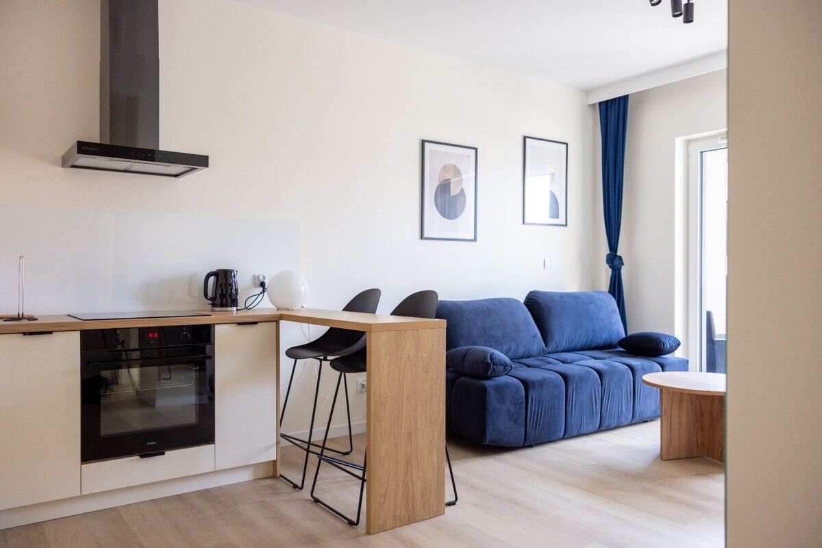 Na osrednji lokaciji boste našli mir in udobje. Razkošno stanovanje z dvema spalnicama, dnevno sobo, kuhinjsko kopalnico in veliko teraso je opremljeno z vsem, kar potrebujete za kratko in dolgo bivanje. Nasproti je središče Manufakture s trgovinami, restavracijami, kinom, plezalno steno, telovadnico. Old Town Park 800m. Brezplačno parkiranje v zaprtem stanovanjskem naselju. Odlično prenočišče za raziskovanje mesta in poslovno bivanje.