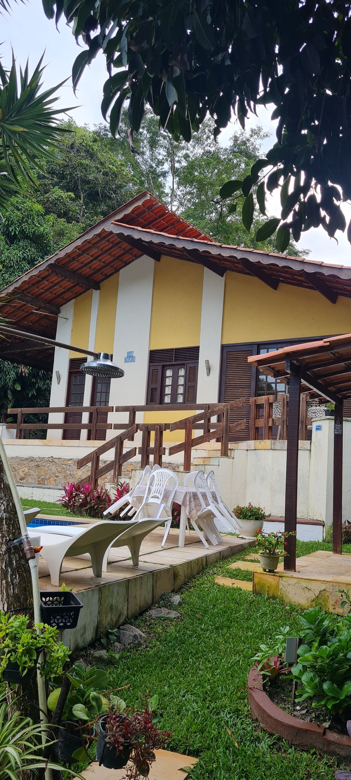 Čudovita lokacija v Serra de Pacoti/Ce, s široko paleto cvetja. Imamo veliko dnevno in jedilnico, kuhinjo; 5 apartmajev, 2 apartmaja z 1 zakonsko posteljo in 1 zakonsko posteljo; 2 apartmaja z 1 zakonsko posteljo in 1 enojno posteljo; 1 suita z 1 zakonsko posteljo; velik balkon z lastniki mreže, jedilna miza in žar; igrišče pred hišo, na kratko, vse, kar potrebujete za uživanje v gorski klimi ob zvoku ptic in uživanje v čudoviti pokrajini!