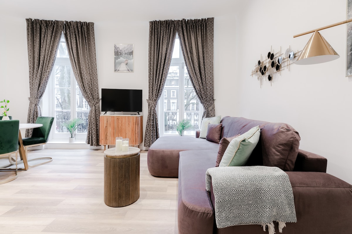 Your charming home away from home! This freshly renovated 1 bedroom, 1st-floor period flat features a King bed with peaceful garden views, fast Wi-Fi, and a standing desk for remote work. Ideally located near vibrant Notting Hill and Bayswater, with great shops, restaurants, and transport links. Paddington Station is close, and Kensington Gardens is a short walk away. Perfect for solo travelers or couples seeking a cozy, well-connected stay