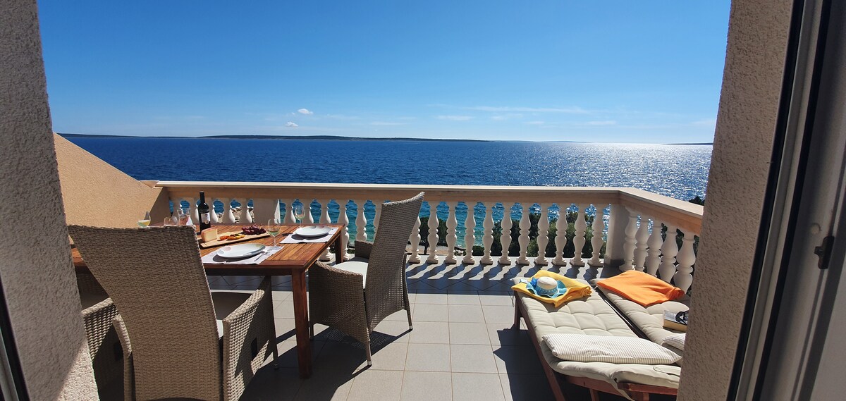 What to say about this wonderful apartment...if you search for something really special and beautiful - you just arrived. Directly by the sea with a romantic view on the sunset... this highly decorated apartment is offering you more than you expect and gives you a special feeling of spaciousness and design...Ambient is amazing, outside and inside... there are 5 national parks in 1 hour drive.. you can see and feel the best part of Croatia. Hope to see you soon...
