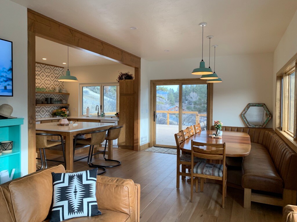 It's hard to say which is better, the house or the location! Remodeled to the studs in '18, this modern, southwestern home is less than two blocks from Downtown Pagosa (walk to restaurants and the springs) but boasts views out of every window that make you feel like you're out in the wilderness! High-end furnishings (leather couches, Moroccan rugs, top-of-the-line appliances, modern fireplace, steam shower) and attention to detail will greet you at every turn. Let us share our 2nd Home with you!