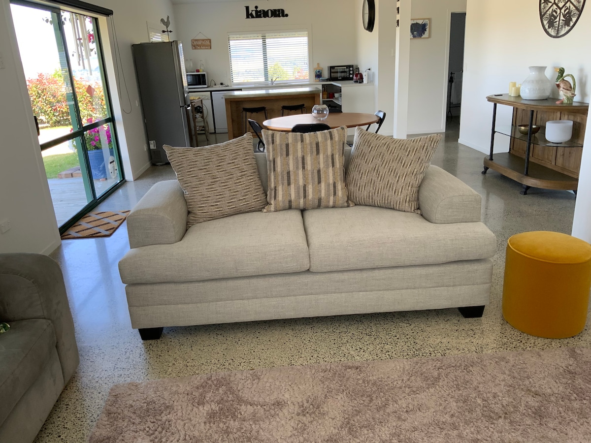 Uživajte v poletnem oddihu v našem svetlem mini domu odprtega tipa, ki ga dopolnjuje ogrevan masažni bazen, ki je namenjen izključno vam. Le 75 minut od Aucklanda boste na odlični lokaciji za odkrivanje spektakularnih sprehodov in plaž, z restavracijami, slavnimi sobotnimi tržnicami ter nagrajenimi igrišči za golf in trgovinami, ki so le nekaj minut vožnje stran. Ko se vaš dan pustolovščine zaključi, uživajte v dobrotah, ki mu sledi odličen spanec v predelanem stanovanju v veliki zakonski postelji.