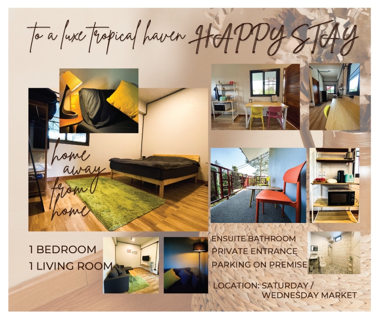 House with great view, working desk, 1 queen size bed, 1 sofa bed (for max 2 kids, or 1 extra adult or just to relax) Kitchen is on ground floor & bathroom is outside directly adjacent to the house. The House is directly next to a beautiful small stream & the Saturday market park with huge playground. Surrounded also by many cafe's, restaurants, Yoga Centers & co-workings. The night market at the famous walking street is only a 10 minute walk.