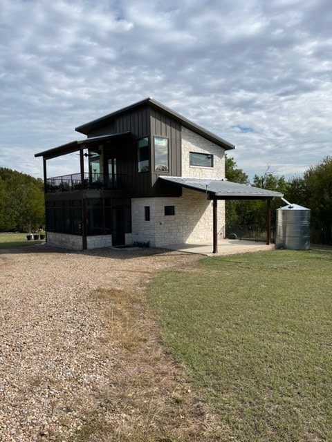 Rustikalna, prenovljena koča. 1 spalnica z zakonsko posteljo (Queen), dnevni prostor z (2 ločenima posteljama), 2 kopalnici in kuhinjska niša. Sprehajalne poti, v katerih lahko uživate! Mokri potok in ribnik na 1 hektar. Zunanji prostor za piknik. Ujemite in sprostite ribolov. Čudoviti konji, ki se pasejo na posesti. Več zunanjih prostorov za uživanje. Prostor za sedenje na zadnji terasi s pogledom na ribnik iz koče. Odličen kraj za počitek in miren nočni počitek. 38 milj do meja mesta Austin.