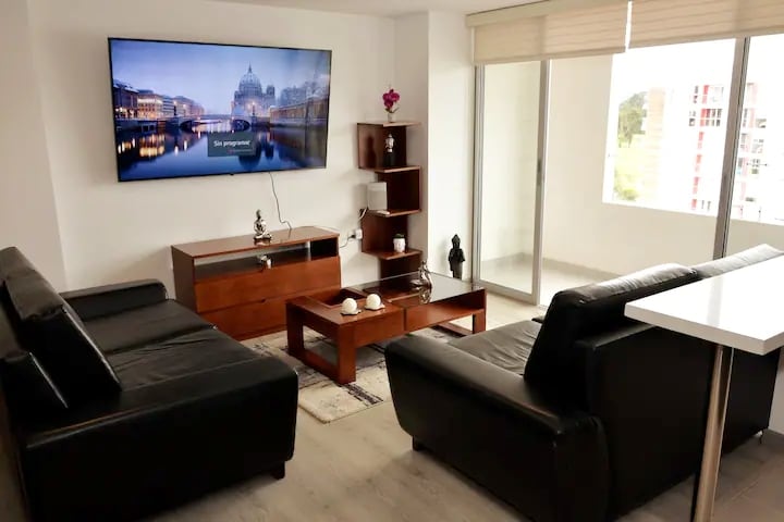 Exclusivo apartamento a orillas del lago Sochagota,podrás disfrutar de un espacio de lujo completamente nuevo,pensando en el bienestar y tranquilidad de nuestros huéspedes, con detalles locales y amenidades tecnológicas, como: cerradura y parlante inteligente , lámpara y televisor con asistente de voz, calefactor, y un bello balcón con vista lateral al lago. Encontrarás descanso, lujo y contacto con la naturaleza, todo en un solo lugar.