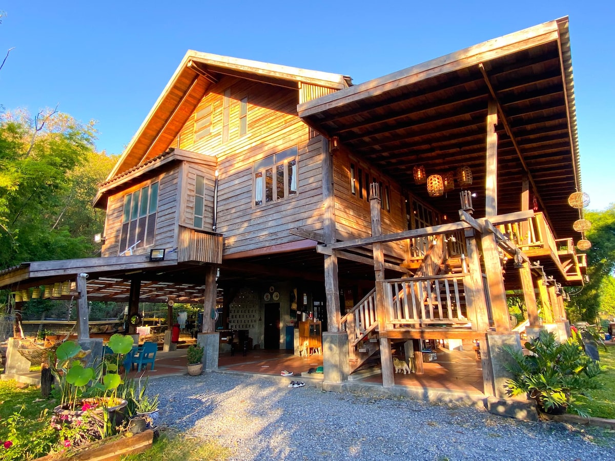 Sprostili se boste v tradicionalnem tajskem prenočišču. Ta lesena hiša ima dve nadstropji s 475 metri kvadratnih. Hiša je tudi v naravi; imeli boste jasen pogled na gore, zelenjavne parcele in velika drevesa, ki se gojijo v 5 Rais (2 hektarjih).
