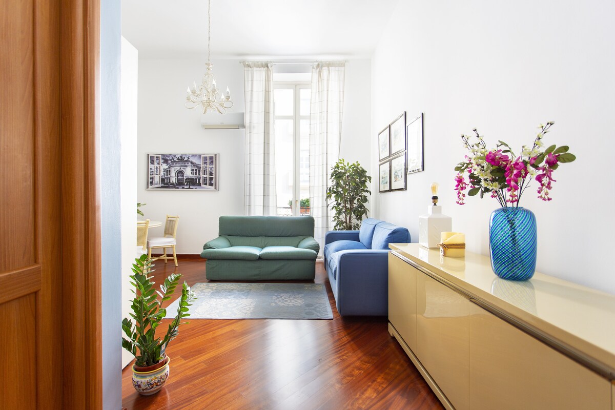 L'appartamento si trova in un Palazzo storico del 1900 di particolare pregio archittetonico per la presenza di marmi, ringhiere antiche originali e rivestimenti a pavimento con maioliche in stile liberty. I tetti alti, la struttura originaria in tufo, con ambienti spaziosi e aperture grandi e ariose rendono la casa fresca, ventilata e molto luminosa. La casa è arredata con gusto ed è efficiente sotto ogni profilo per quel che riguarda la cura, il comfort e la praticità.