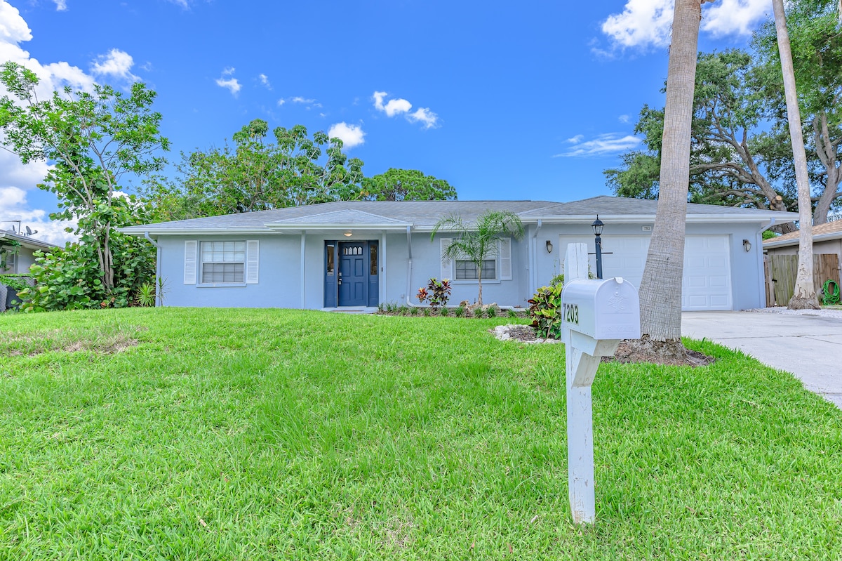 ✨Welcome to Retro Tides! 🌊 ✨A newly renovated waterfront retreat near Anna Maria Island Gulf Beaches! Observe Dolphins from your Private Dock! Relax in the Tiki Hut + Hot Tub! Take the Kayaks for a spin! This getaway is made for boating, fishing, beaching, and relaxing in true Florida style! 🌴