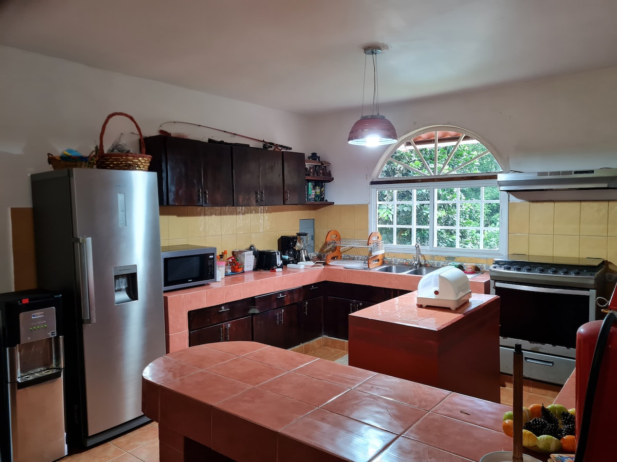 Check in 9a.m Check out 5p.m. Relájate con toda la familia y amigos en esta acogedora casa de Campo, contamos con piscina Climatizada, terraza techada de 100 mts para que celebres tus ocasiones especiales (maquina de hielo incluida) y una persona(no es obligatorio) a su disposición en el día para limpieza y los asista en todo lo necesario para que su estancia sea agradable e inolvidable, donde la tranquilidad se respira, entre senderos, ríos y miradores, mucha flora, fauna, 1 hora de la Ciudad.