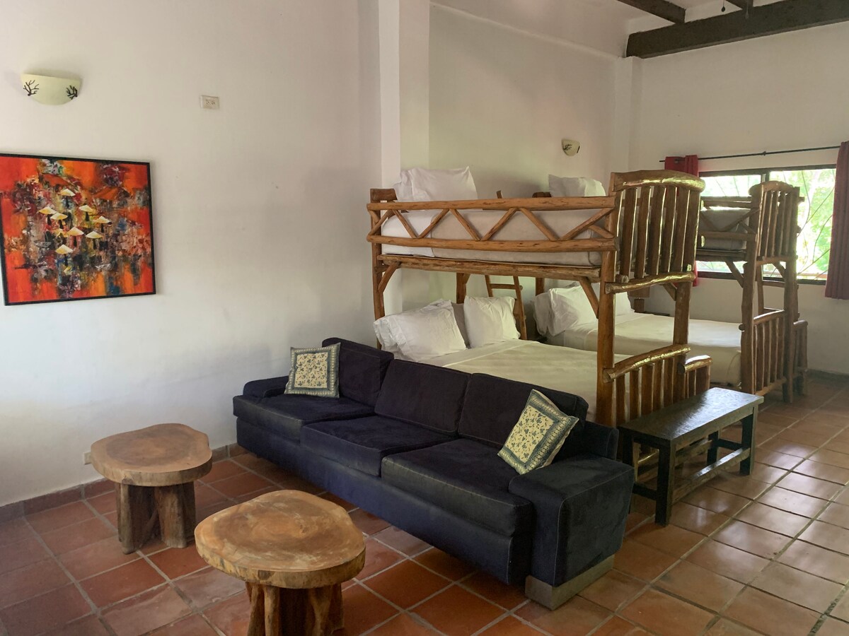 Garsonjera je pritlično stanovanje, ki se nahaja na 4 hektarjih zemljišča z nedotaknjenim deževnim gozdom. Stanovanje je prostorno s popolnoma opremljeno kuhinjo in veliko zunanjo jedilnico z žarom in pogledom na džunglo. Prostor je idealen za družine in skupine prijateljev. 8 minut hoje od čudovite črno-bele peščene plaže z naravno senco. Izjemno varna soseska.
