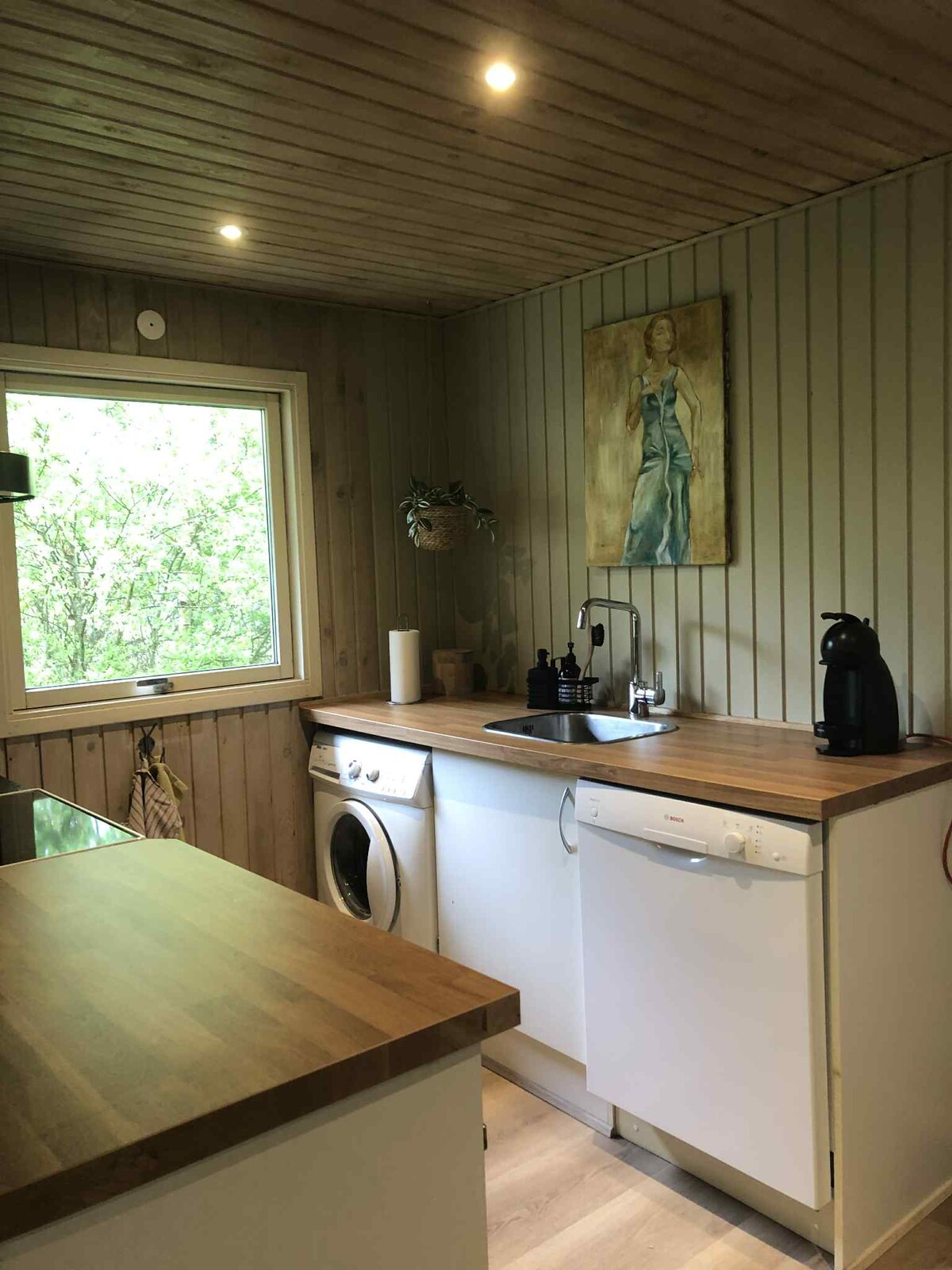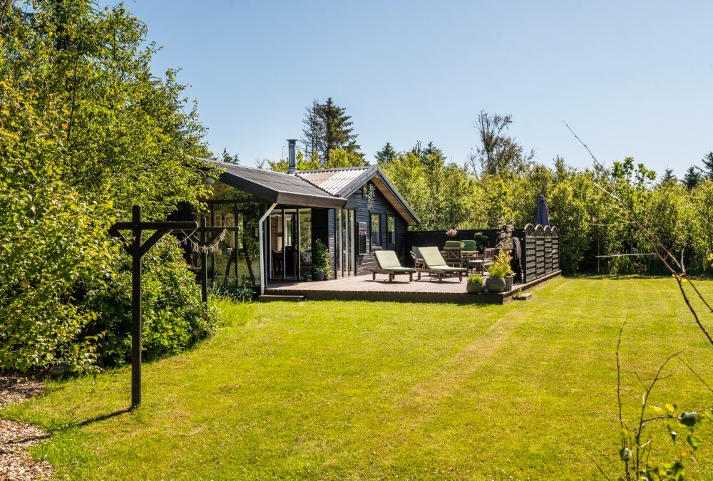 V sožitju z naravo, udobna velika prenovljena koča v mirnem območju. Ali ste za plažo, gozd, počitniško življenje, MTB, golf, padel, Fårup Sommerland ali pa samo za izlet stran od vsega? Tukaj je nekaj za vsakogar. Hiša je ohranjena v prvotnem slogu, z dovolj prostora in zraka za počitnice z do 2 družinama (9 gostov). Ne glede na vreme lahko uživate v zunanji prhi, kopeli v divjini, kadi s hladno vodo in savni. Hiša, prizidek in nadstrešek za avtomobile ustvarjajo zavetje in so povezani z leseno teraso in majhno travnato površino z možnostjo različnih dejavnosti na prostem.