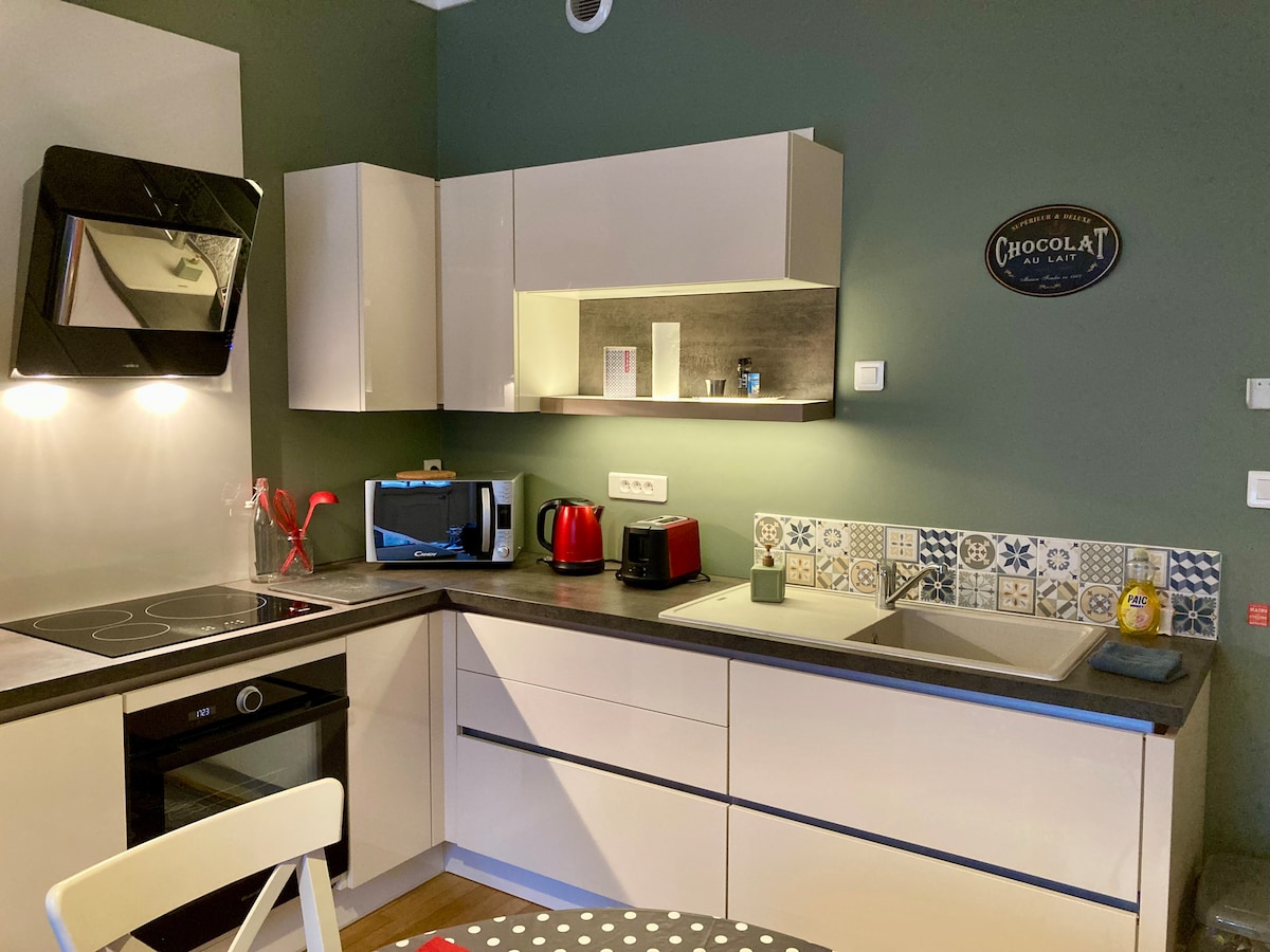 Venez vous détendre dans ce logement chaleureux et lumineux entièrement rénové et remis à neuf ! Vous saurez apprécier son charme et le calme. Vous disposerez d'une chambre et également d'un canapé convertible qui convient aux enfants pour venir en couple ou en famille, nous disposons également d'un lit parapluie et chaise haute pour bébé à la demande. Ce logement est situé à 50 métres d'un supermarché. Nous disposons d'un parking privatif discret. Le logement doit être rendu propre.