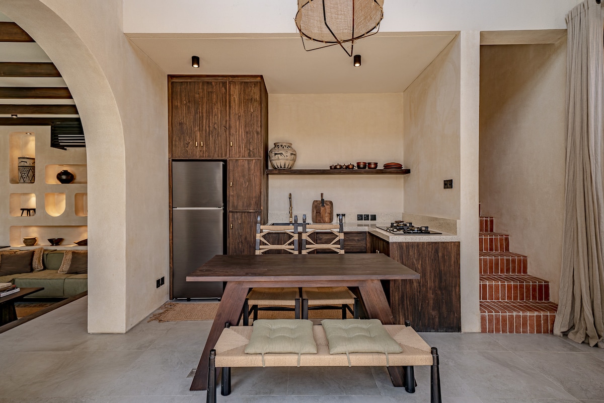 Step into Bedouin House, a curated 2-bedroom Oasis in Pererenan where desert spirit meets tropical ease. At its heart lies a private wellness sanctuary with a sauna, ice bath, and hot jacuzzi — crafted for deep restoration, connection, and intimacy. What to expect: - Private Wellness in your villa: Sauna, Ice Bath and a jacuzzi for deep relaxation and connection. - Great location in Pererenan, 10 min from Pererenan Beach and 8 min from Canggu. - Near all the best cafes and restaurants.