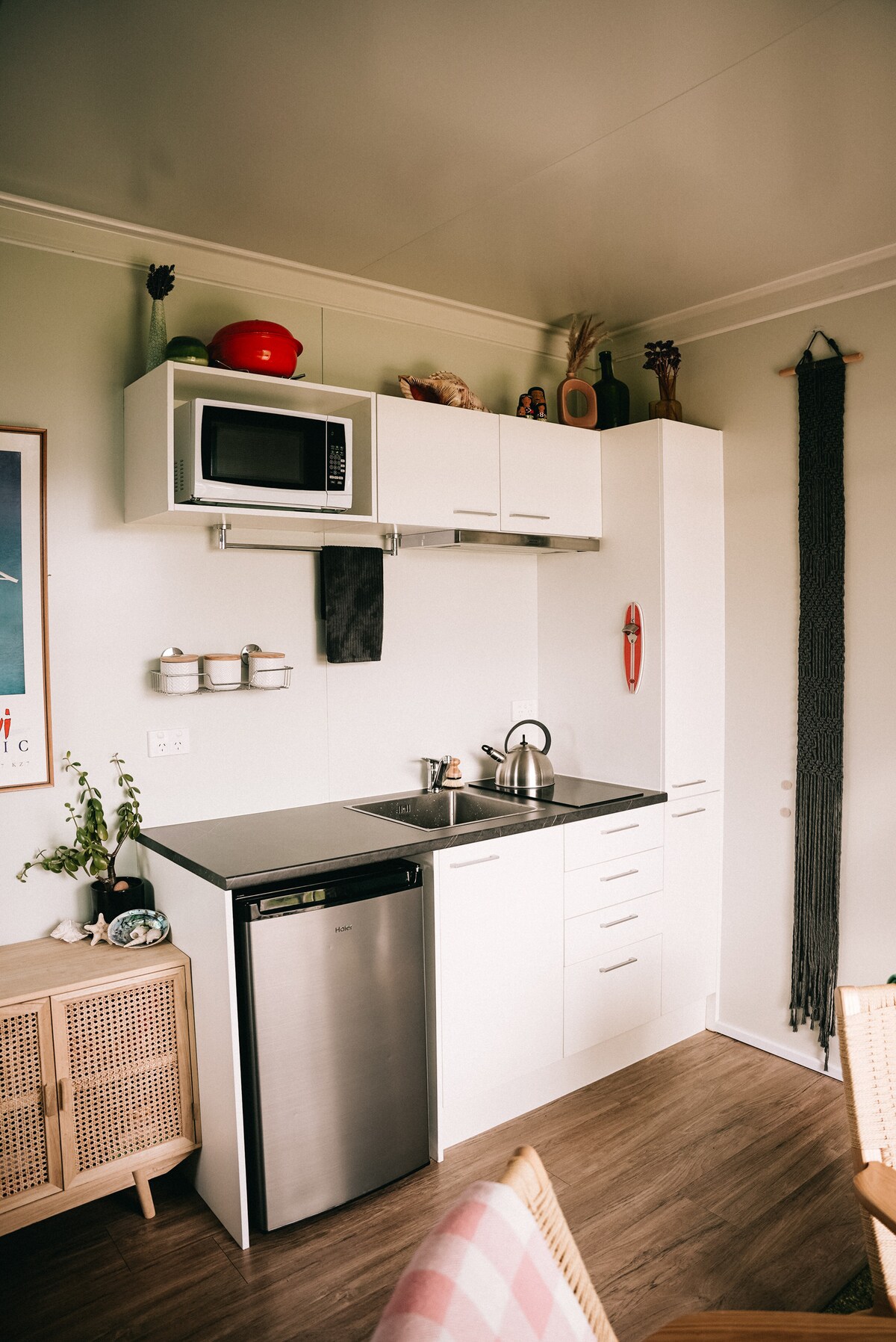 Naše samostojno stanovanje je opremljeno s sodobnim pohištvom, brezplačnim Wi-Fijem in razgledom na ocean do svetilnika Nugget Point skozi drsna vrata. Na voljo je tudi zasebna terasa z mizo in sedeži. Dnevni prostor ima kavč, jedilno mizo in stole ter pametno televizijo z ravnim zaslonom. Ima kuhinjsko nišo z kuhalno ploščo, mikrovalovno pečico, električno ponev za cvrtje, hladilnik, vrč, opekač in vse osnovne potrebščine. Kopalnica ima tuš kabino. Ima zasebni vhod in parkirišče izven ulice.