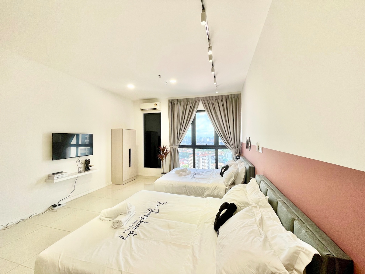 Welcome to our newly renovated Urban Retreat Studio at HighPark Suites. Featuring 2 queen beds, this stylish space is perfect for families or friends seeking a cozy stay. Enjoy city views, a Smart TV, a fully equipped kitchen, and top-notch facilities like a 50m Olympic-length pool, gym, and jogging track. Just 5 minutes to Paradigm Mall.
