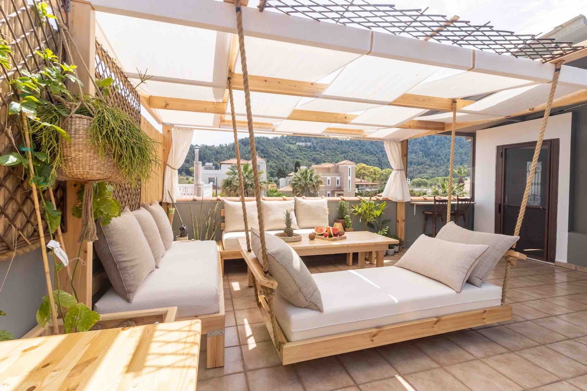 Euphoria Luxury is a brand new boho styled apartment (58 sq.m) with heated Jacuzzi, spacious balconies (40 sq. m), two bedrooms, fully equipped kitchen, Barbeque, fitness equipment and complimentary FOUR E-SCOOTERS .Euphoria Luxury is located in the sea side of Faliraki, ideal for families and friends who they want to relaxed into a refined environment! Enjoy the mountain view and the breathtaking summer sunsets or have a spa experience in our Jacuzzi.