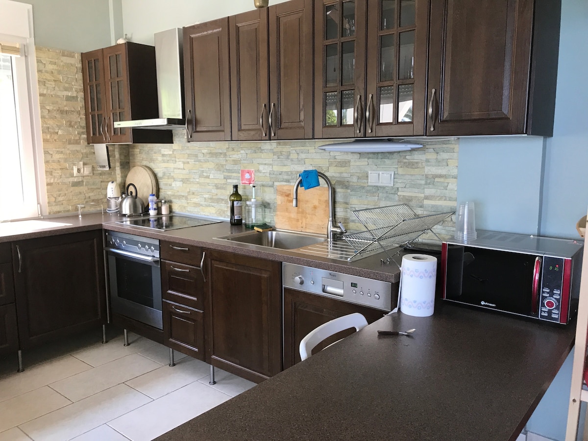 Flat1 for 5 adults in total (2 on the kitchen sofa-bed). ( Flat2, seperate listing: "anthoula's Flat 2 is for 3adults(+1young child if it sleeps with the adults on the same bed or a camp bed we provide, ALL IN 1 ROOM). Parking spot.Terrace (with 2steps).T.V.Air condition, WIFI, electric fans. Washing machine on the terrace 2019, , BBQ & stone oven. smoking on the terrace.12' on foot from the centre(shops etc),20'min on foot from the beach (free public parking area at the beach)