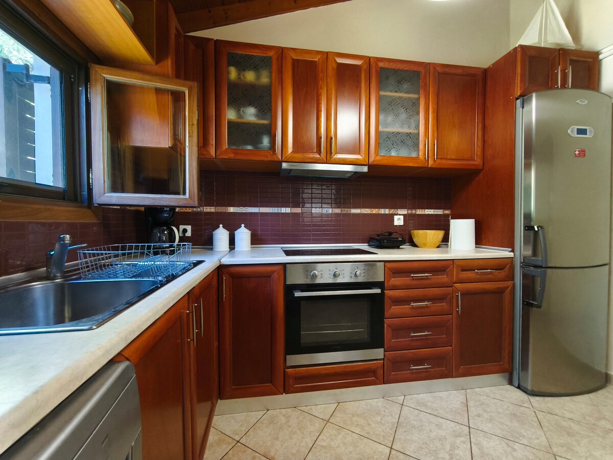 Sprostite se v tem mirnem, elegantnem prostoruVeliko drag parfum v majhnih steklenicah ... tako je naš Manzaraki: Majhna, Enostavna, Cool, Svetla, Popolnoma nova, z lesenim pohištvom in okvirji , popolnoma opremljena s potrebno opremo. Na gori s pogledom na morje in z lastnim vrtom z drevesi in pisanimi rožami..pripravljeni, da gostijo vaše počitnice in trenutke skrbi !