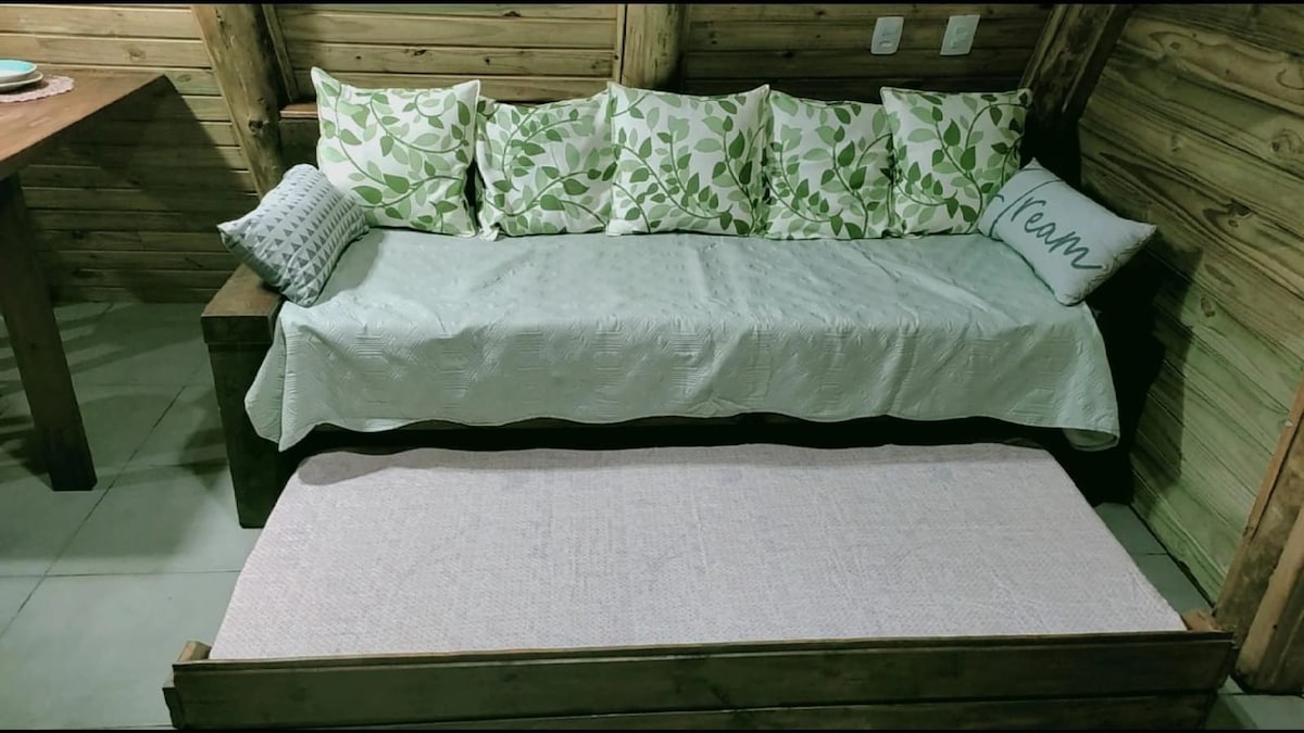 Majhna hiša je narejena iz lesa in se nahaja na otoku Ilha do Mel, EKOLOŠKEM REZERVATU, tukaj ni avtomobilov in motornih koles (verjeli ali ne!). DNEVNA CENA MINI-HIŠKE JE NA OSEBO. Majhna hiša je bila zgrajena, opremljena in je z vsakim navdušenjem skrbna za sprejem naših gostov na način, kot se počutijo kot doma. Hiša ima spalnico, kuhinjo, kopalnico, zunanji prostor s pokrito teraso, žar, pralni stroj, linijo za oblačila in visečo mrežo.