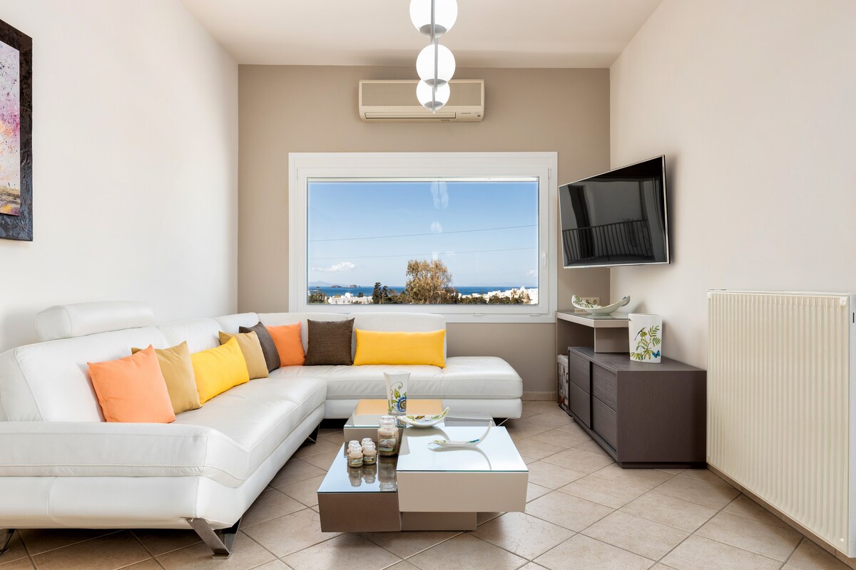 Čudovito urejena vila s čudovitim pogledom na morje in velikim bazenom. Uživajte v veličastnih sončnih zahodih zaliva Naousa Bay z velike terase, obrnjene proti morju, pa tudi na čudoviti terasi z bazenom z ležalniki ter senčnim salonom in jedilnicami. S hitrim dostopom do čudovite in živahne vasi Naousa vila ponuja sproščujoče in spokojne nastanitve. Vila za 4 osebe, ločena zasebna garsonjera (3. spalnica) pa za 2 osebi. Celotno prenočišče je popolnoma klimatizirano.