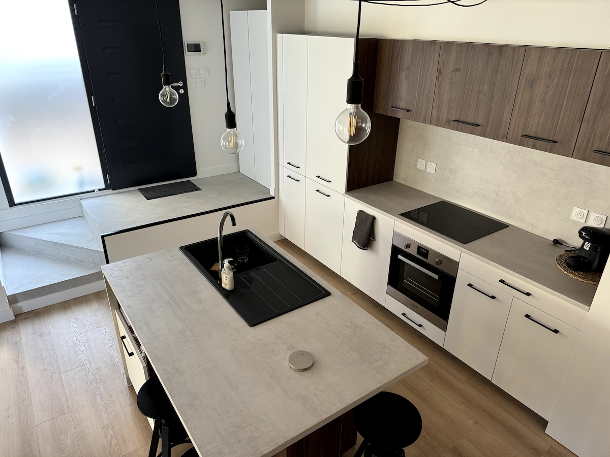 To družinsko prenočišče je blizu vseh znamenitosti in opreme, 6 minut od Kapitola. Arhitekt iz Toulousa, ki ga je leta 2023 prenovil arhitekt v Toulousu, ponuja 3 spalnice, 2 kopalnici in miren vrt za sproščujoče trenutke. Uživajte v prijaznem bivalnem prostoru z raztegljivim kavčem in ameriško kuhinjo. Naša hiša se nahaja v bližini postaje podzemne železnice Patte d 'Oie, v mirni ulici s pogledom na park in združuje eleganco, udobje in idealno lokacijo za raziskovanje rožnatega mesta. 2 PARKIRNI MESTI