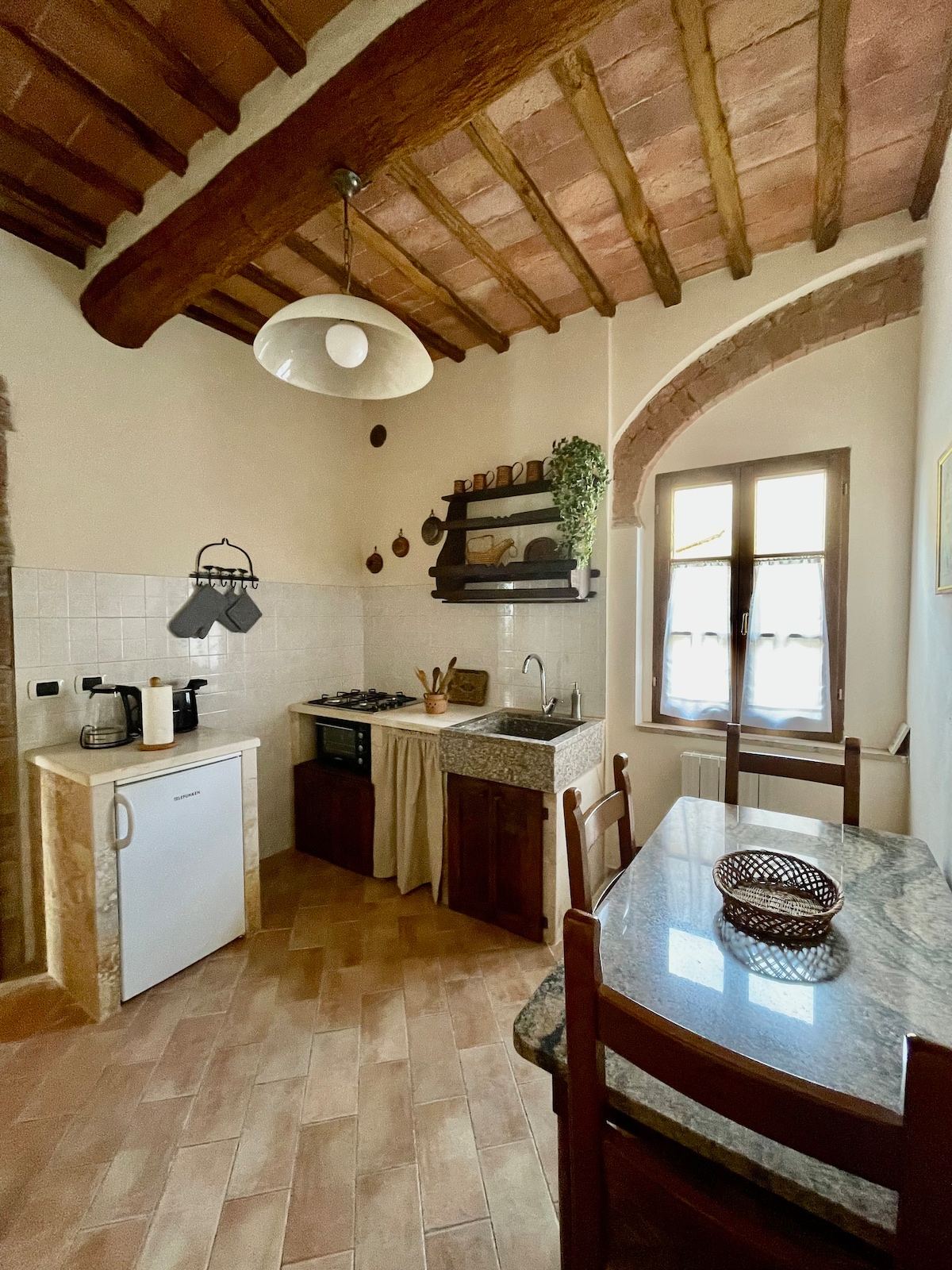 STIAMO LAVORANDO PER VOI! ... WE ARE WORKING FOR YOU! The house is completely renovated and furnished in 2018 with classic-Tuscan style furniture. The colors are warm and enveloping to better rest during your holiday of peace and relaxation. In addition to the two double bedrooms, you have a kitchen with an equipped kitchenette, fridge, induction cooker and a furnished terrace with a beautiful view of the surrounding countryside.