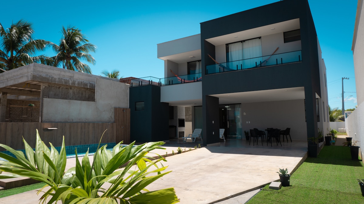 Casa Nova, velika, razkošna, v zaprtem stanovanju z vso varnostjo in blizu plaže. Kapaciteta 20 oseb Na voljo je 5 spalnic, vključno s 4 apartmaji, 1 kopalnico za druženje in 1 kopalnico. Klimatska naprava v vseh spalnicah in sobah, sušilnik za lase v vseh kopalnicah. Prebivališče z novim pohištvom, dobro opremljeno, s polno kuhinjo in vsemi potrebnimi pripomočki. Imamo posteljnino, mizo, kopalnico in brisače za plažo. Igralnica z bazenom, Pegolinom/Totó in mizo za kartanje Gurmanski prostor in bazen.