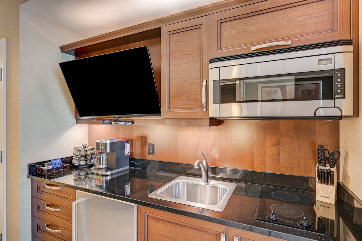 Pobegnite v luksuzno suito s kuhinjsko nišo in predimenzionirano marmorno kopalnico z zasebno masažno kadjo/ločeno prho. Nadstandardna zakonska postelja, okna od tal do stropa, raztegljiv kavč Masažna kad in ločena prha z masažno kadjo Prostorna dnevna soba z zabaviščnim centrom in televizorjem z ravnim zaslonom visoke ločljivosti Popoln dostop do ledenih rek in bazenov MGM Grand!