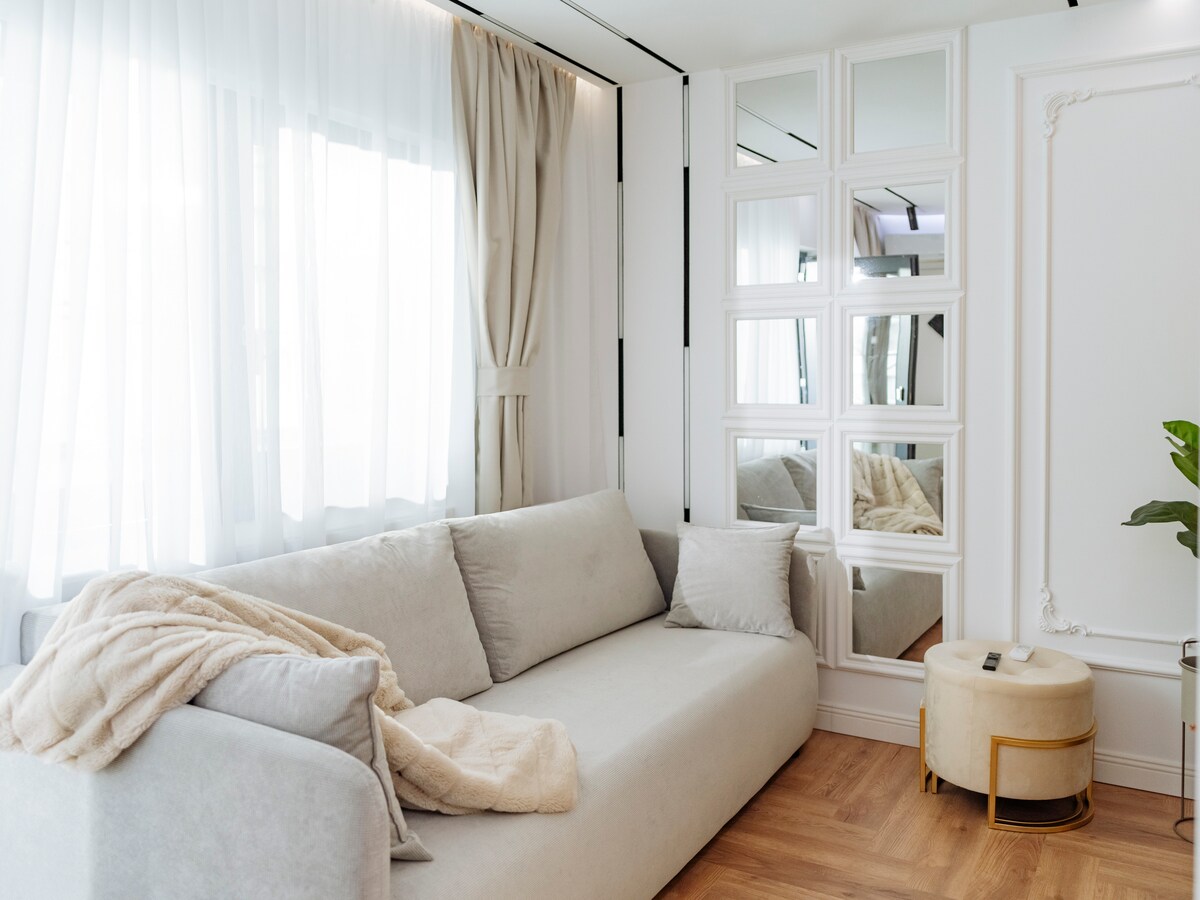 Popolnoma nov studio apartma s sodobno zasnovo in neverjetnim pogledom na mesto, ki se nahaja v novem stanovanjskem kompleksu.Studio se nahaja na le 4 minute hoje od 1 Decembrie 1918 podzemne železnice, poleg stavbe imamo supermarket Lidl, Avditorij Pallady in enostaven dostop do A2 avtoceste. Med vašim bivanjem je na voljo tudi podzemno brezplačno parkiranje. V udobnem studiu so na voljo pametni TV+Netflix, brezplačen Wi-Fi in samopreverjanje.