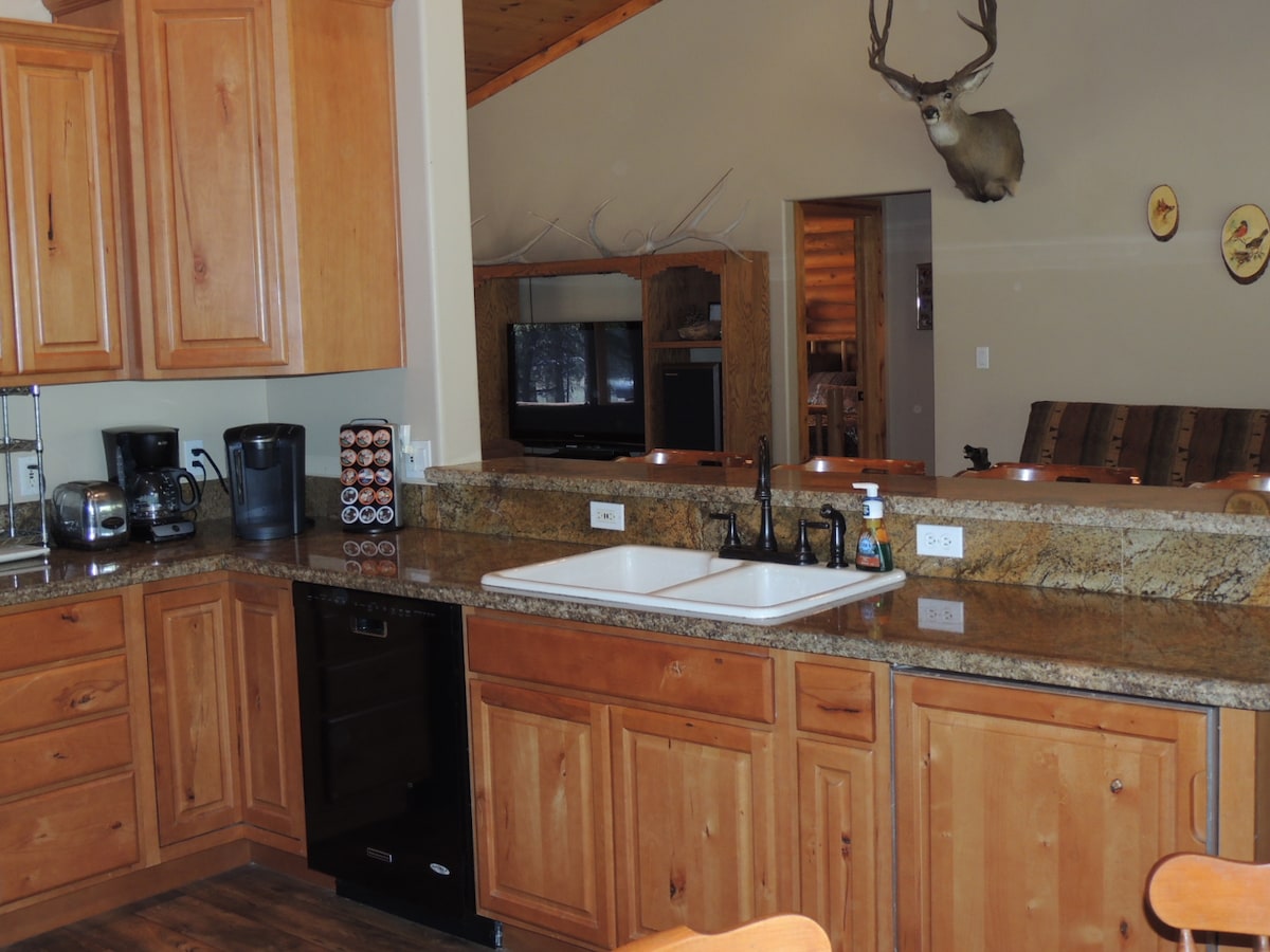 Rocky Mountain Retreat je kot nalašč za obisk Velikega kanjona, Flagstaffa, Sedone in drugih. Navdušeni boste zaradi odmaknjenega občutka bivanja v gozdu in naravi ter zaradi številnih udobnih potrebščin. Rocky Mountain Retreat je odličen za pare, družine z otroki in hišne ljubljenčke. Davek je 6,9%. Ta brezhibna koča na 3 osamljenih hektarjih visokih Ponderosa Pines je lepo urejena in popolnoma opremljena z vso sodobno opremo.