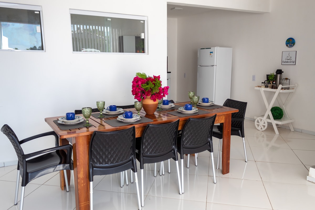 Descubra a Casa Biana, um refúgio em Barreirinhas, dentro do melhor condomínio fechado com acesso ao rio Preguiça. São 4 suítes , 6 banheiros, cozinha completa, piscina, churrasqueira, TV em todos ambientes e sala climatizada. Oferece o cenário perfeito para momentos felizes em família ou com amigos. Inclui berço portátil e cadeira de alimentação. Próxima a uma praia privativa e a 7 min do centro, nossa casa é a base ideal para explorar os encantos locais e os Lençóis Maranhenses. Viva a magia!