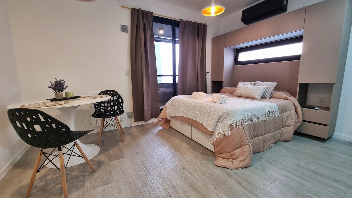 Dobrodošli v našem čudovitem garsonjeri v Palermo Hollywoodu, v bližini Campo Argentino de Polo Zakonska postelja | Smart TV 42' + Netflix | Sef | Klimatska naprava Podpultni hladilnik | Mikrovalovna pečica | Opekač kruha | Nespresso | Električni grelnik vode | Električni štedilnik Wi-Fi | Pametna ključavnica | Varnost non stop Najboljše brisače, rjuhe in odeje Pomembno: Prihod se začne ob 13:00 - odhod do 11. ure Prtljago lahko pred prihodom in po odhodu brezplačno zadržimo v naši pisarni v stavbi