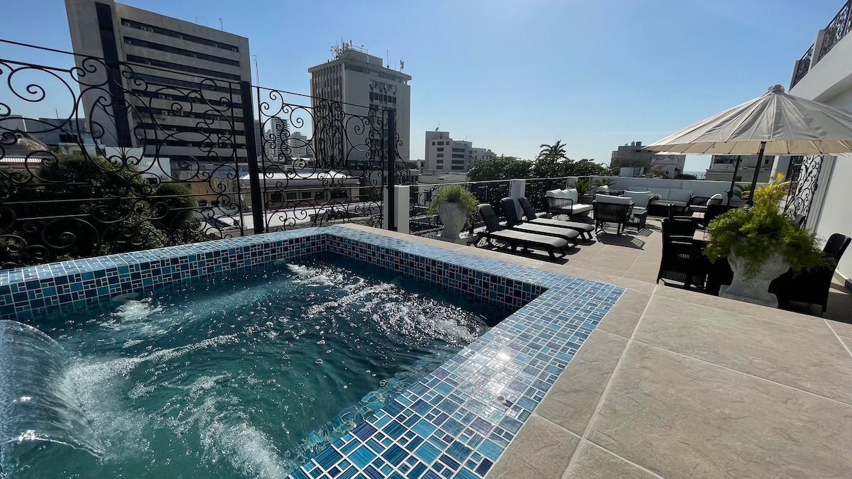 Uživajte v preprostosti te mirne, tople in varne nastanitve, ki se nahaja v zgodovinskem središču mesta, v bližini zaliva Santa Marta ter parka neveste in ženina, kjer boste našli odlične gastronomske znamenitosti, muzeje in knjižnice. Stavba ima tri bazene, turško kopel in čudovit pogled na ocean. Udoben prostor, kjer se lahko spočijete in uživate v prostem času ter se udeležite jutranjih dejavnosti.