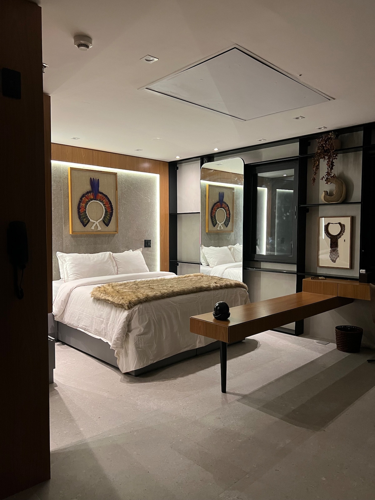 Stanovanje je urejeno in razdeljeno na dve sobi, z dnevno sobo in skupinsko sobo, 32m². Enota je opremljena z ameriško kuhinjo z električno kuhalno ploščo, mikrovalovno pečico, mini barom, omrežjem Wi-Fi in delovnim prostorom. Imamo storitev parkiranja. Nahajamo se v prefinjeni soseski Vila Olimpia, z enostavnim dostopom do glavnih avenij, kot so Faria Lima, Bandeirantes in Luiz Carlos Berrini. Do letališča Congonhas je 5 km, blizu trgovskih centrov Vila Olimpia in JK.