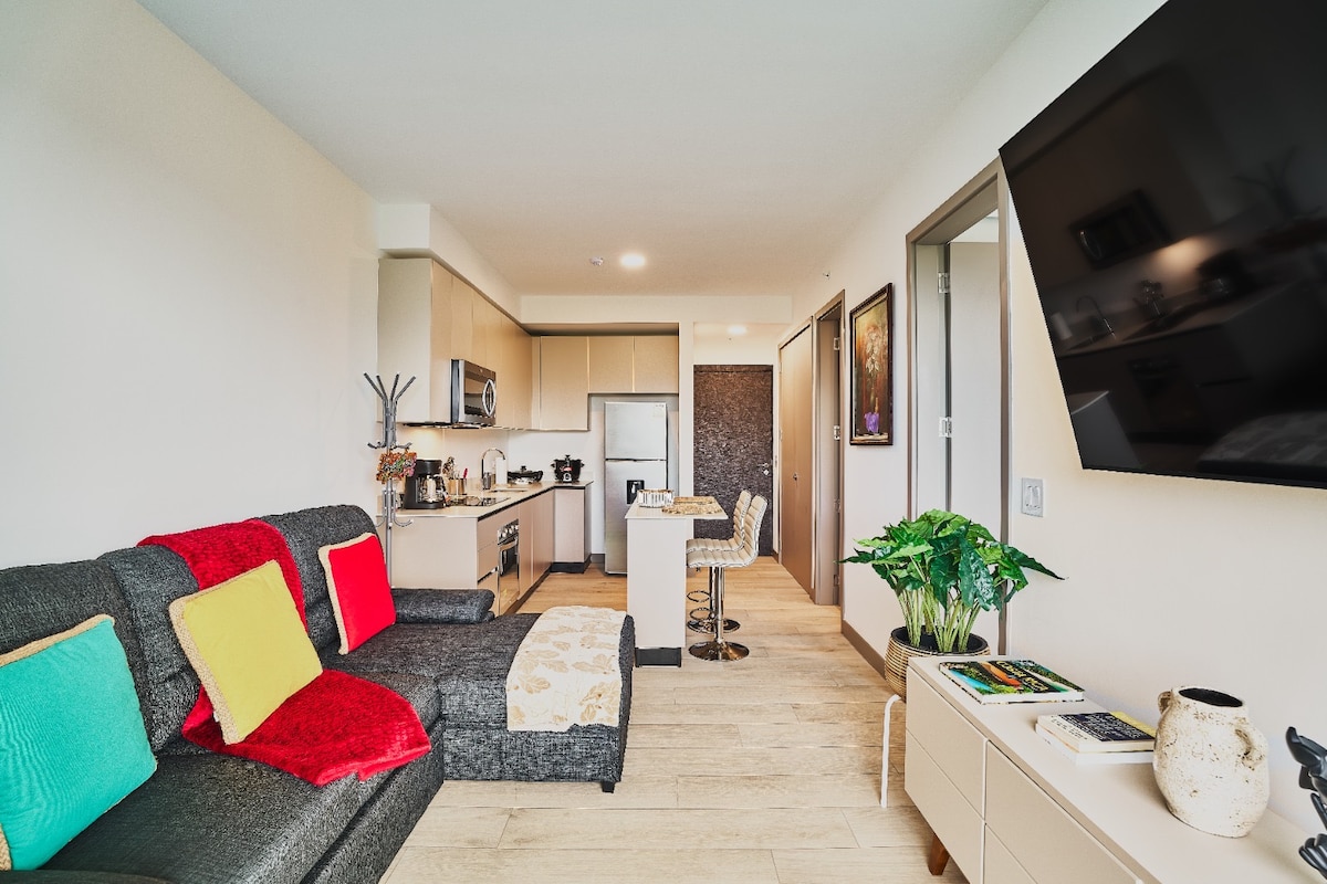 Dobrodošli v mojem udobnem dvosobnem stanovanju, zasnovanem z mislijo na vaše udobje, ki se nahaja v skrivnem stolpu Sabana s strateško lokacijo, neverjetnimi razgledi in neverjetno opremo, ki je na voljo vam in vašim gostom. Manj kot 5 minut hoje od metropolitanskega parka La Sabana, supermarketov, restavracij in enostavnega dostopa do najpomembnejših poti v prestolnici. Samo 30 minut od letališča SJO.