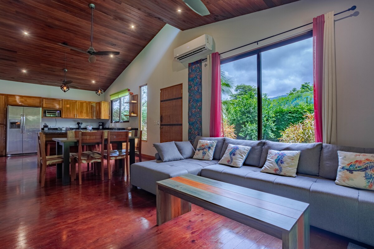 2bd 2ba modern home - on the mountain, in a rain forest overlooking the ocean! Located high above Uvita, you'll feel disconnected from it all, yet only 12min from downtown & FAST wifi! The 180° views will stop you in your tracks. And of course there’s a pool to cool off in while enjoying a timeless vacation on a 66 acre oasis in the clouds. So whether it be a coffee or tea, a glass of wine, a cold drink it will pair perfectly w/ a Costa Rican sunset. 25$ per extra guest per night