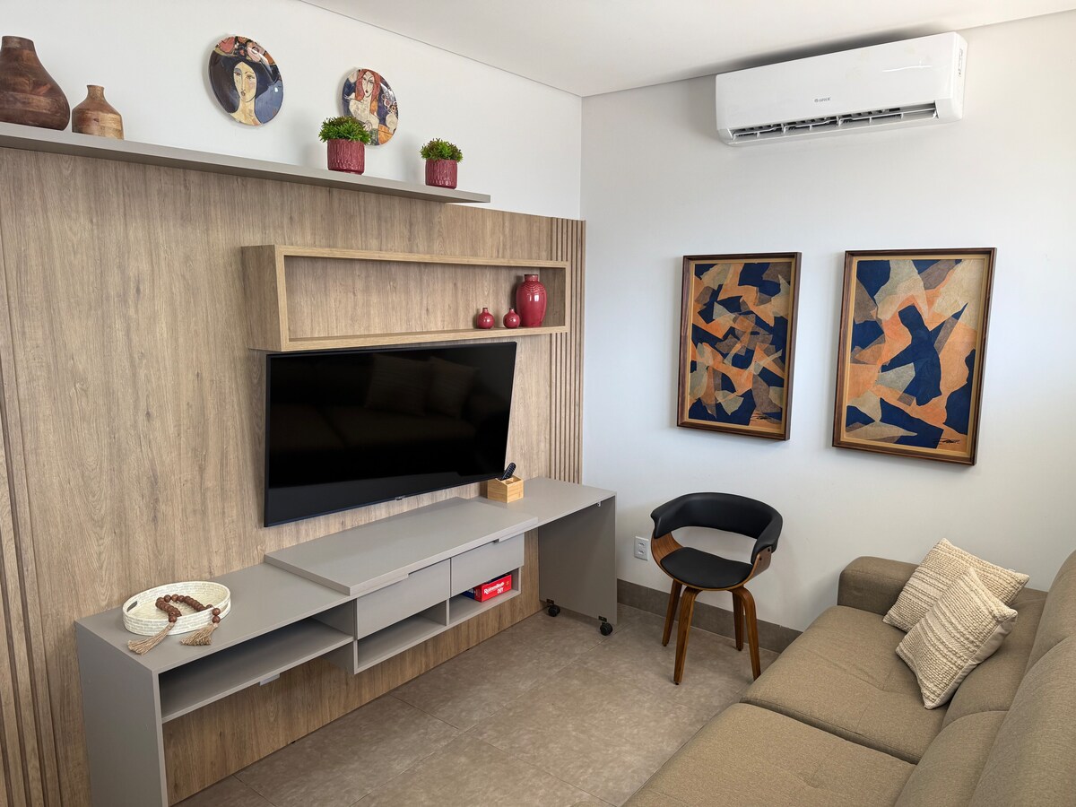 Desfrute de dias confortáveis neste lindo apartamento com dois quartos, sendo uma suíte espaçosa com cama queen e um segundo quarto igualmente confortável. O ambiente foi pensado para oferecer praticidade e bem-estar, ideal tanto para viagens em família quanto para estadias de trabalho. A sala é ampla e acolhedora, equipada com TV, sofá confortável e mesa de jantar — perfeita para relaxar ou compartilhar refeições. A cozinha é completa, com todos os utensílios e eletrodomésticos.