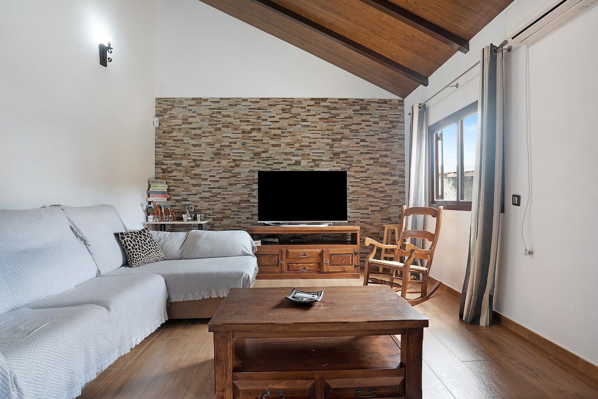 Lepa andaluzijska hiša v mirnem kraju, ki oddaja spokojnost. Panoramski razgled na podeželje in morje v ozadju , jasni dnevi pa si lahko ogledate tudi obalo Maroka. Zelo funkcionalno opremljeno z eleganco in preprostostjo. Pritličje je sestavljeno iz stranišča , dnevne sobe in odprte kuhinje z izhodom na verando in vrta z zasebnim bazenom. 1. nadstropje: 1 spalnica, 1 dvoposteljna soba in 1 enojna spalnica, ki si delita 2 kopalnici. 2. nadstropje:podstrešje z raztegljivim kavčem in streho s pogledom.