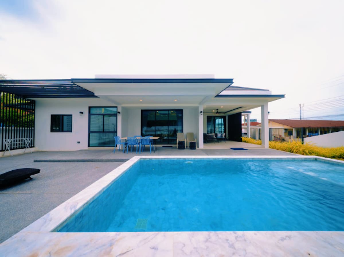 拎包即住,度假首选! 交通位置:别墅坐落在芭提雅的中天海滩.Chaiyaphruek 路上,位置优越!步行就能到达中天海滩,几分钟车程可抵达芭提雅市中心,附近有丰富的购物、美食和娱乐选择,生活非常方便。交通网络完善,去哪都方便,适合度假也适合长期居住。 别墅亮点 : • 四卧五卫,带独立浴室:全家或一群朋友一起住完全没问题,宽敞又私密。 • 私人泳池:享受专属泳池的清凉惬意,随时畅游,完全不用和别人共享。 • 户外烧烤区:配有烧烤炉,能和家人朋友随时享受户外烧烤的乐趣,轻松打造派对氛围。 • 齐全厨房设备:别墅内配备微波炉、冰箱等,随时享受家常餐。 • 高品质家具和家电:拎包入住,家里所有的家具、家电、生活用品都配备齐全,不用再额外添置。