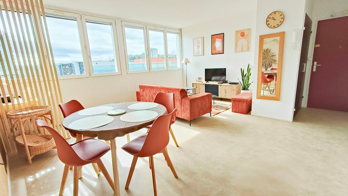 V središču Paula, ki gleda na grajske vrtove, preprosto odložite kovček in uživajte v mestu! Pustite avto za čas bivanja, zaprto garažo v pritličju, 22kW polnilna postaja za električna vozila, tip2, Freshmile. Avtobusne postaje in številne restavracije so oddaljene 500 m, Boulevard des Pyrénées 600 m, golf 1,3 km stran. Klimatizirano dvostanovanjsko stanovanje s površino 52 m², ki lahko sprejme 4 osebe, vegetacijska terasa, opremljena s 14 m².