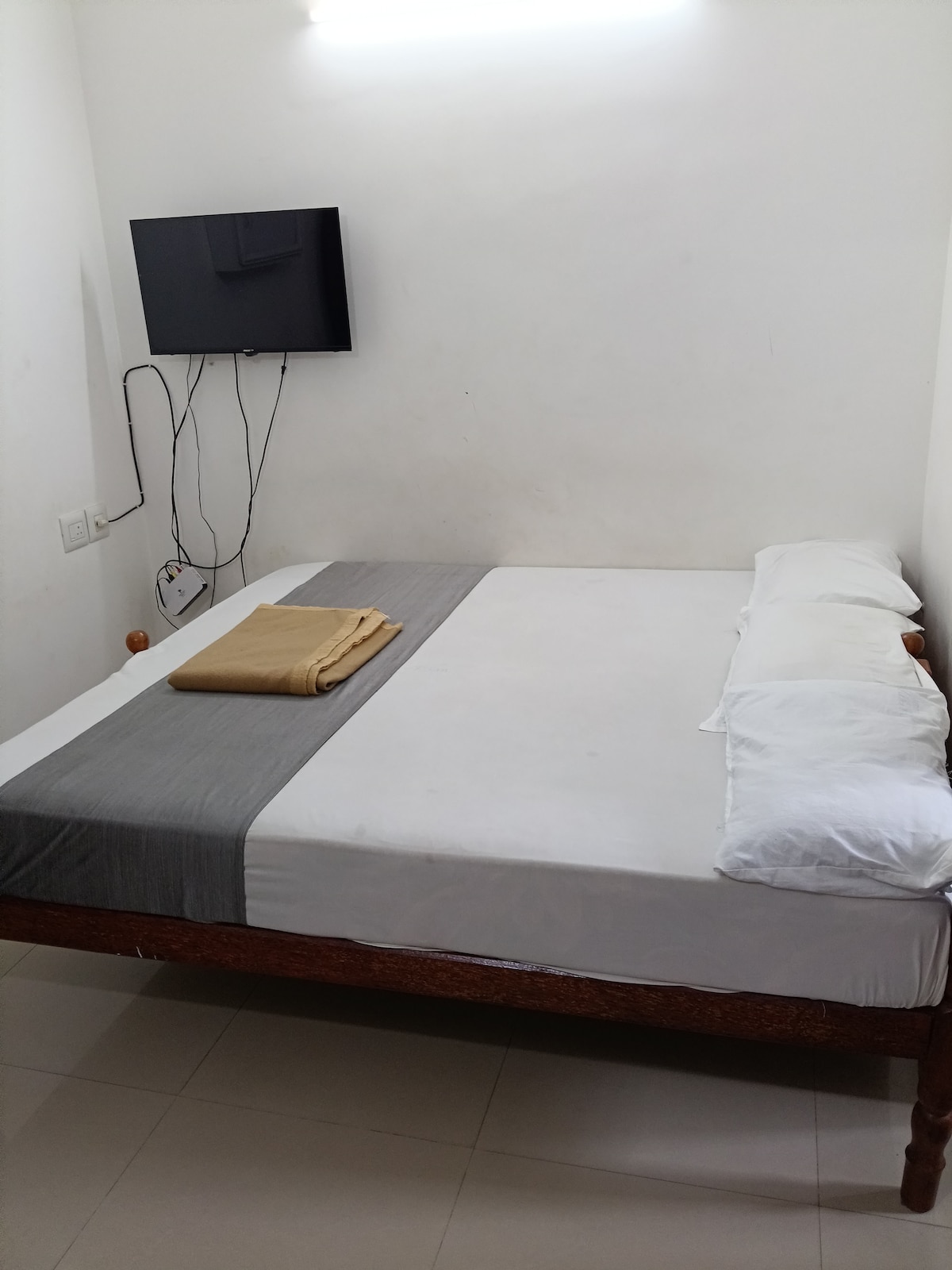 Sneha Apartment is a bright, comfortable 1BHK just 750m (8 to 10 min walk) from Guruvayur Temple. AC, fast Wi-Fi, a neat bedroom, a cosy living area, a functional kitchen, and free secure parking inside the compound. Calm, clean, and easy to settle into. Ideal for temple visits, short family stays, or work trips. Sleeps Comfortably fits 3 adults + 1 child, or 2 adults + 2 children. 4 adults can also stay with 2 extra mattresses provided.