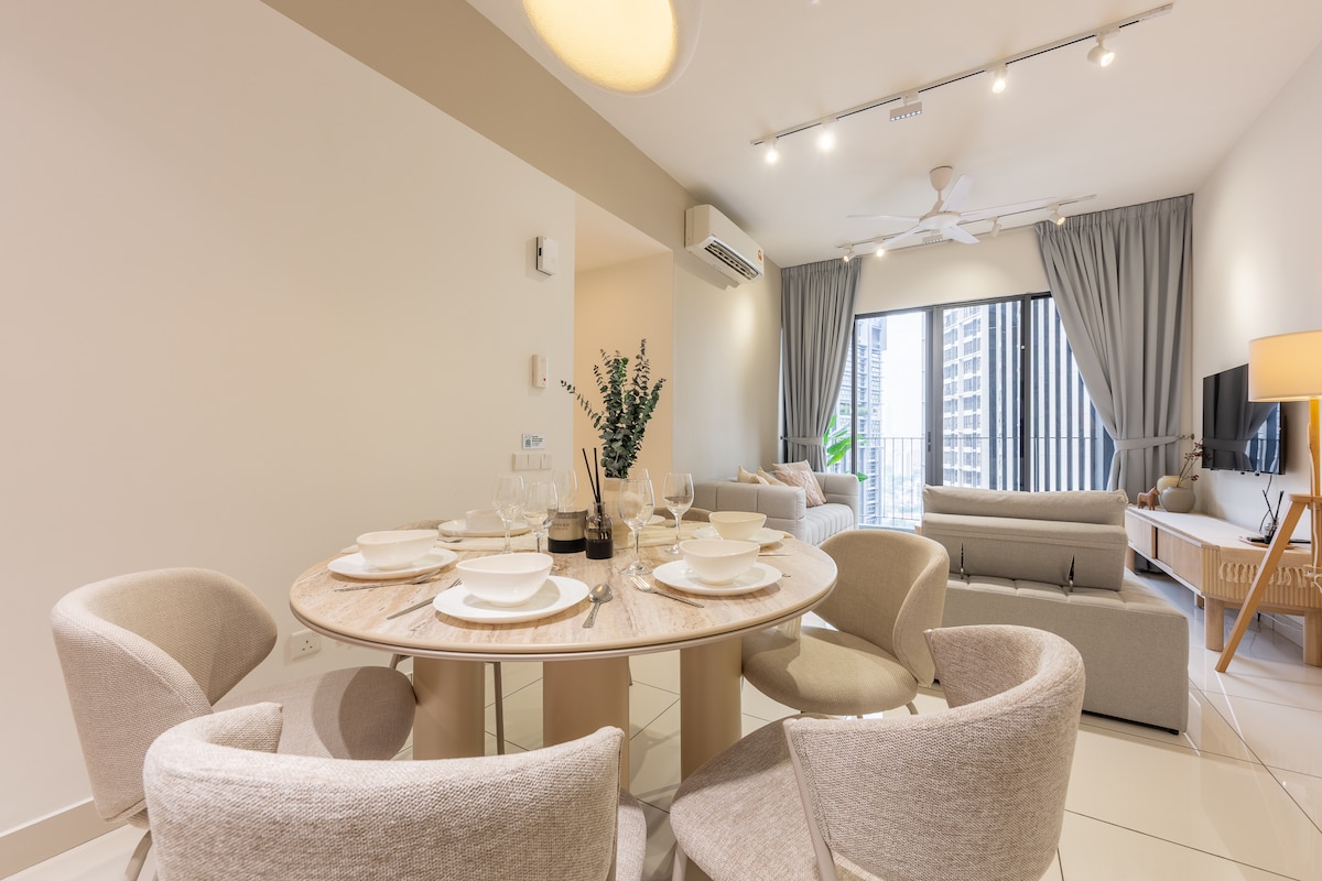 Peaceful and super clean 3-bedrooms-apartment comes with 2 free parking lot. Perfect for family staycation, friends gathering or business/events travelers to enjoy architecture esthetics & landscapes. 10-20 minutes away from major hot spots like Midvalley, Bukit Jalil, Sunway Pyramid, Pavillon 2, Bangsar, Petaling Street and KL city. Easy walking to convenient mart, foodies & bars. Self Check-In, WIFI, roof top infinity pool, gym, children splash pool (below 13yo), free luggage storage.