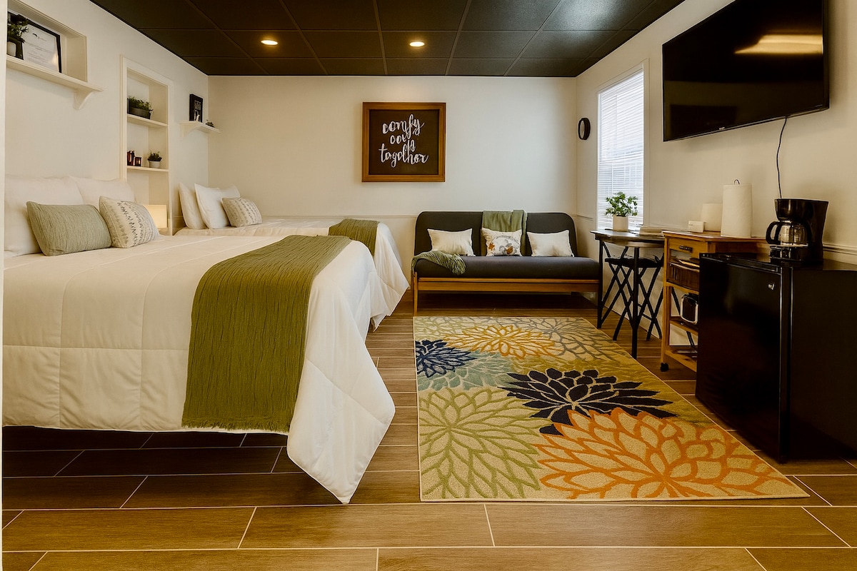 Stopite nazaj v šarm petdesetih let prejšnjega stoletja s sodobnim pridihom tega predelanega stanovanja v Hepburnu. To stanovanje v zgornjem nadstropju** združuje retro šarm s sodobnim udobjem, zaradi česar je kot nalašč za vikende v Stillwaterju ali udobno skrivališče. Do mest Boone Pickens, Block 34, District Bicycle, McKnight Center, Eskimo Joe's, Hideaway Pizza, pivovarn in še več se lahko sprehodite peš. Po zabavnem dnevu se sprostite v starinskem slogu z igrivimi retro detajli - vaše popolno prenočišče Stillwater! **Stopnice so ravne…pomislite na črvskega psa iz poznih 90-ih **