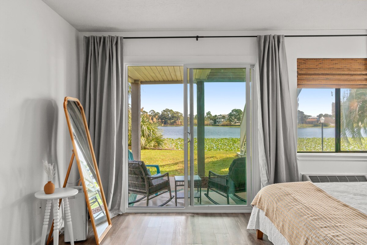 Posodobljena garsonjera v prvem nadstropju z vsem udobjem in opremo, ki jo potrebujete za obisk plaže. Uživajte v kavi na verandi z razgledom na jezero ali pa se po 3 minutah sprehodite po ulici do plaže. Potopite se v bazen. Pier Park je oddaljen 5 minut in ima vse, kar potrebujete. (Ciljana, sveža tržnica, neskončna hrana in bari). Rosemary je oddaljena 10 minut vožnje. 15 minut do letališča. Z lahkoto uživajte v najboljših delih plaže in okolice.