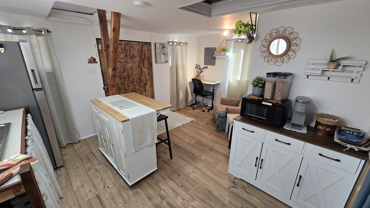 Dobrodošli v našem udobnem mini apartmaju, ki je odlično izhodišče za raziskovanje severozahodne Arizone ali prijeten postanek, če ste samo na poti. Le 15 minut od I-40 smo dovolj blizu mesta, da smo priročni, vendar dovolj daleč, da smo tihi in slikoviti, na hektarju z ekološkim vrtom, piščanci in konji. Laughlin, NV-45 minut Grand Canyon West - 75 minut Las Vegas - 90 minut Kingman ima pomlajeno središče mesta z obrtnimi mikropivovarnami in edinstvenimi jedilnimi možnostmi.