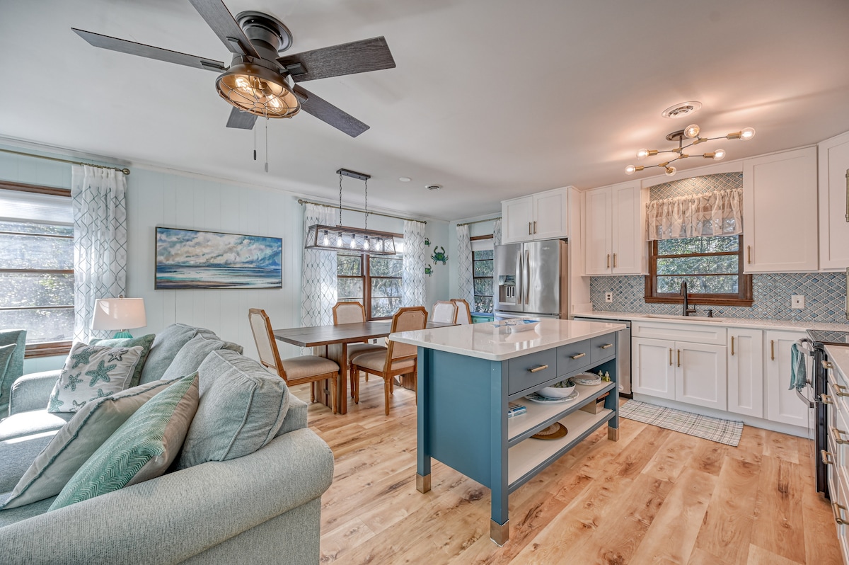 Ta obalna hiška na deželi, ki se nahaja v čudovitem rtu Carteret, se nahaja v čudoviti obalni soseski, ki je le kratka razdalja do plaž na Smaragdnem otoku, lokalnih restavracij in zabave. S seboj pripeljite čoln, vodne skuterje, kolesa ali voziček za golf - na dovozu je dovolj prostora. Na voljo je vsa sodobna oprema, vključno z naslednjim: – tlakovano parkirišče, – veranda z vgrajenim pohištvom. – Novo prenovljena kuhinja, opremljena s kuhinjsko posodo - Pralni in sušilni stroj – Pomivalni stroj - hiter Wi-Fi – AppleTV z YouTube TV