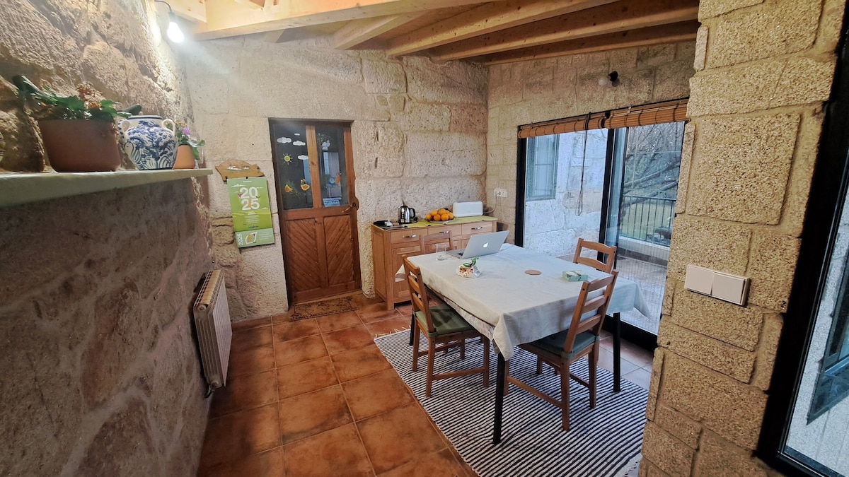 A Casa dos Parladoiros je tradicionalna galicijska kamnita podeželska hiša, zasnovana za družine in skupine, ki želijo uživati v kakovostnem skupnem času. Parna savna, hidromasažna prha, zimski kamin in plinski žar ustvarjajo nepozabne trenutke. Kuhinja odprtega tipa združuje vse, poletni bazen in veranda s pogledom na dolino pa vas vabita k smehu, miru in nepozabnim izletom po južni Galiciji in severni Portugalski.